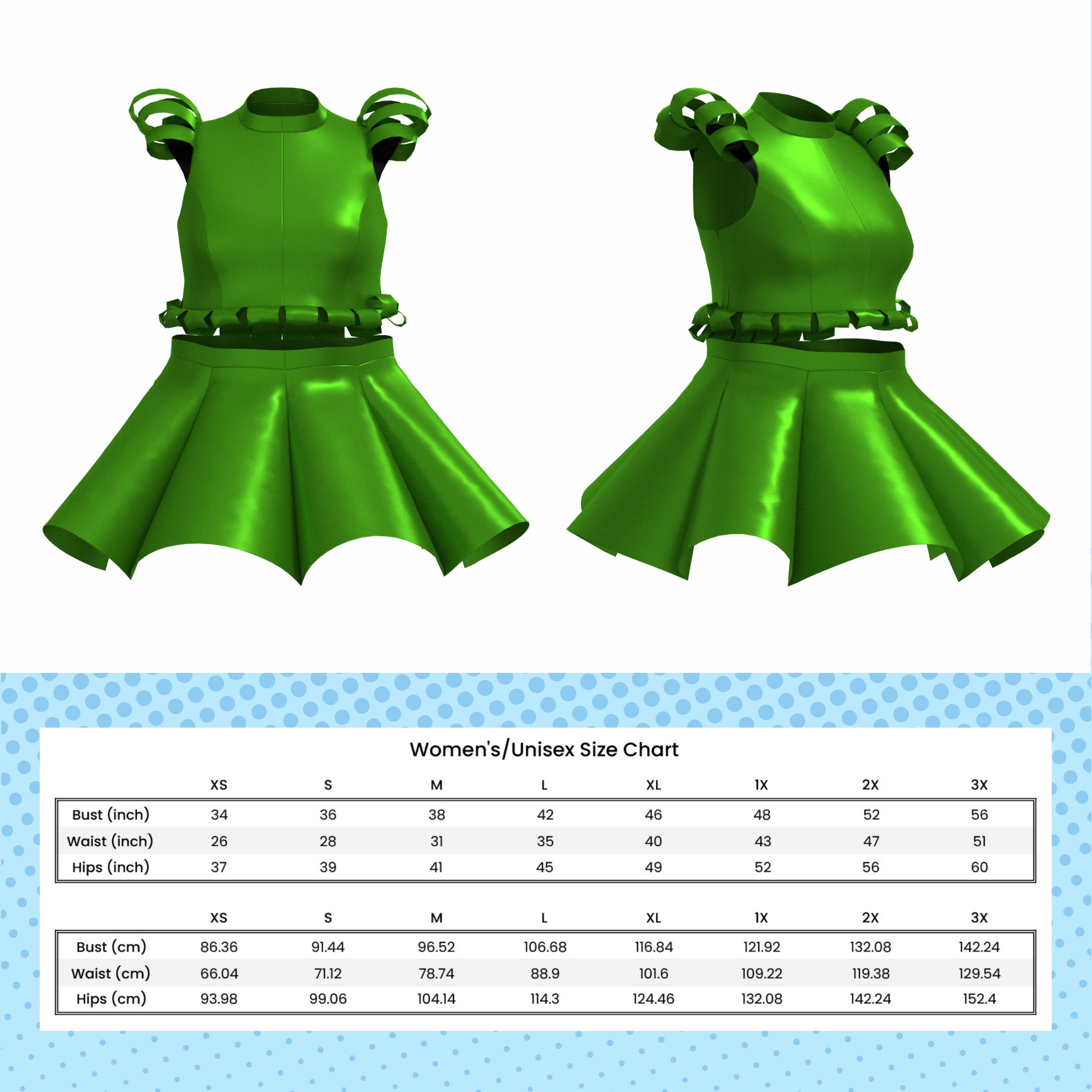 Included with your purchase of this pattern are PDF sewing patterns for her bodice and skirt.