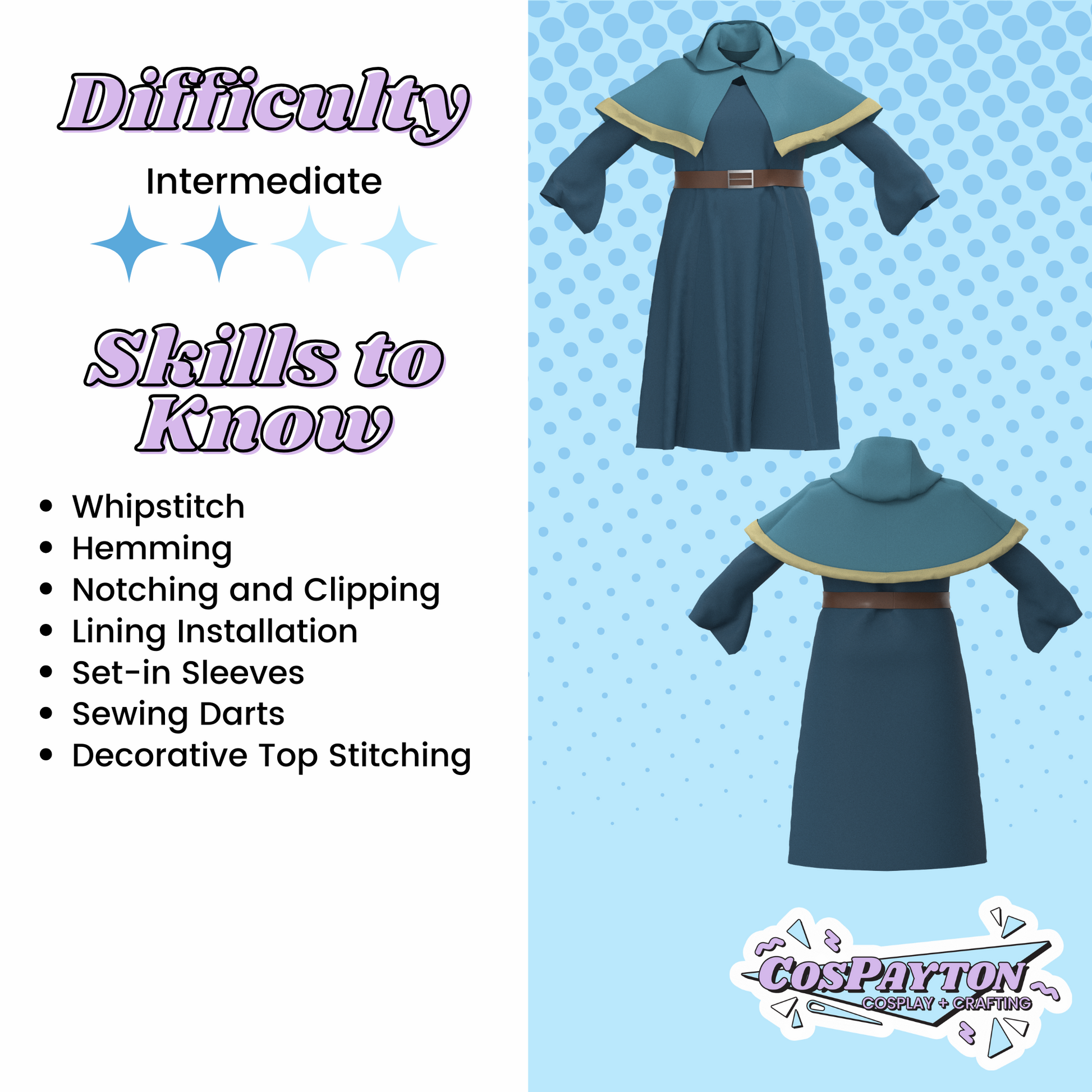 Marcille Donato Dress and Cape PDF Cosplay Pattern | Delicious in Dungeon/Dungeon Meshi Inspired Printable Costume Pattern