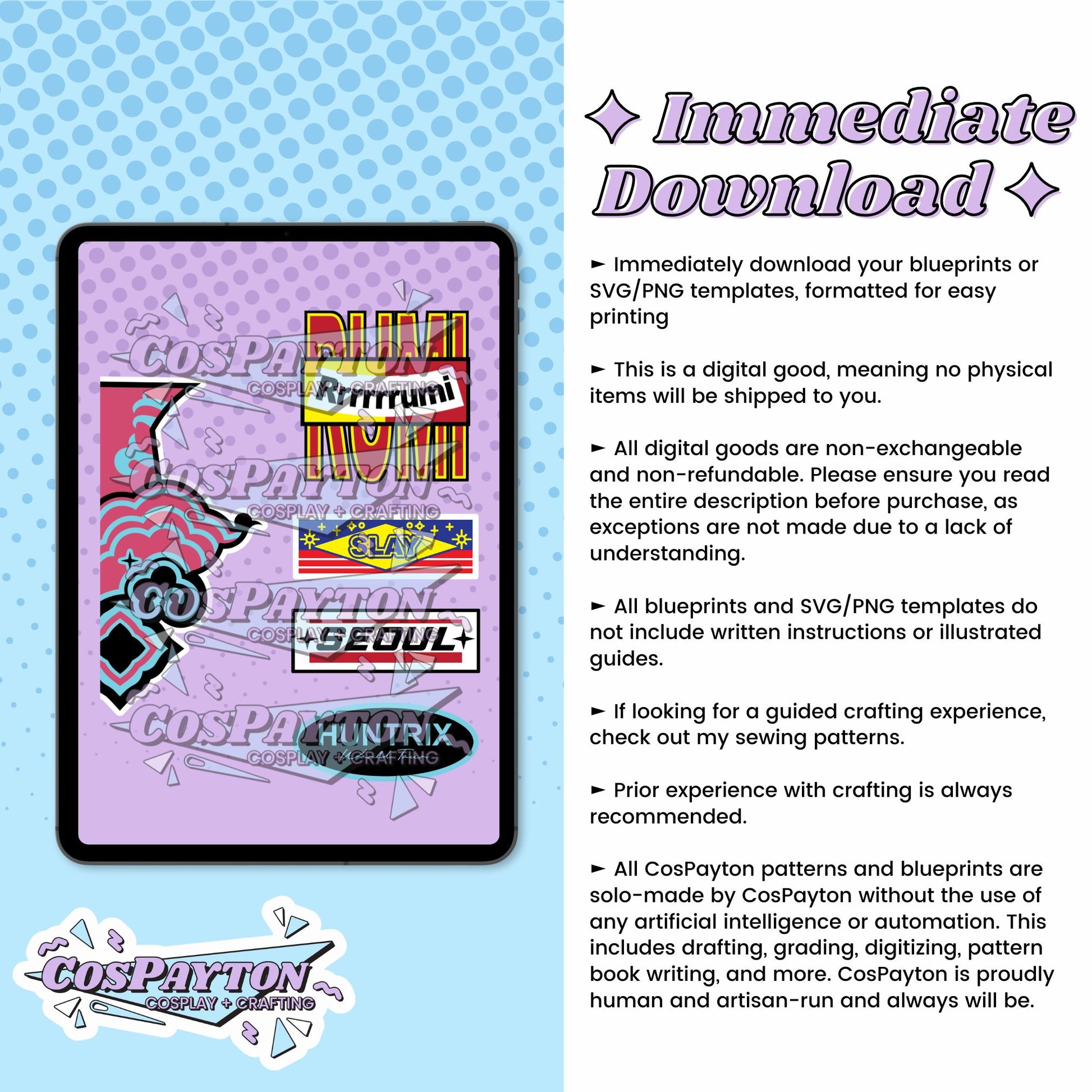 Your purchase includes printable digital templates for a Nightwing-inspired mask as well as PNG/SVG cut files for his chest emblem. Templates are intended to help with cosplay projects, but can also be used for various crafting projects such as sticker making, embroidery, art references, and more!