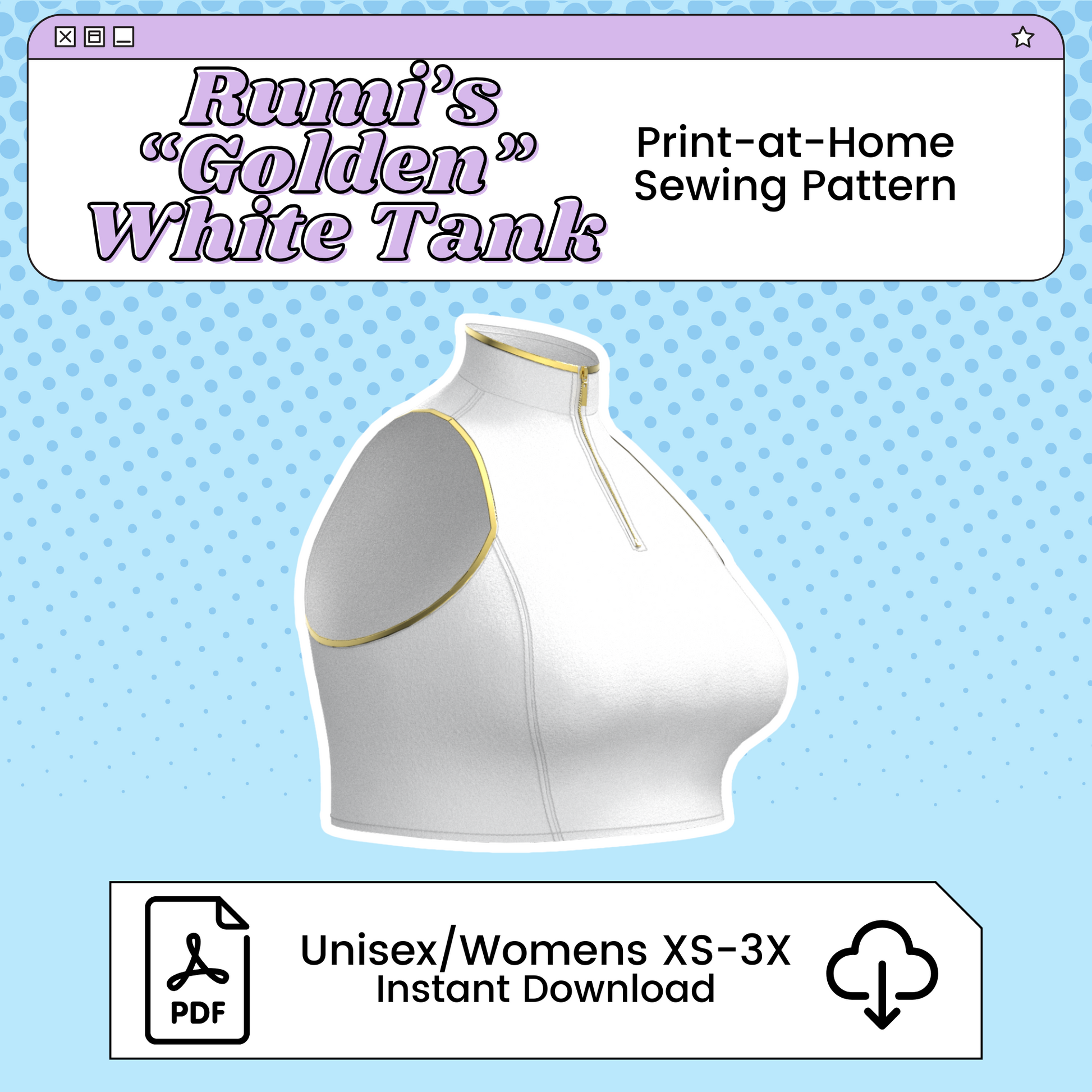 Rumi’s “Golden” White Tank Top PDF Cosplay Pattern | KPop Demon Hunters Inspired Printable Costume Pattern