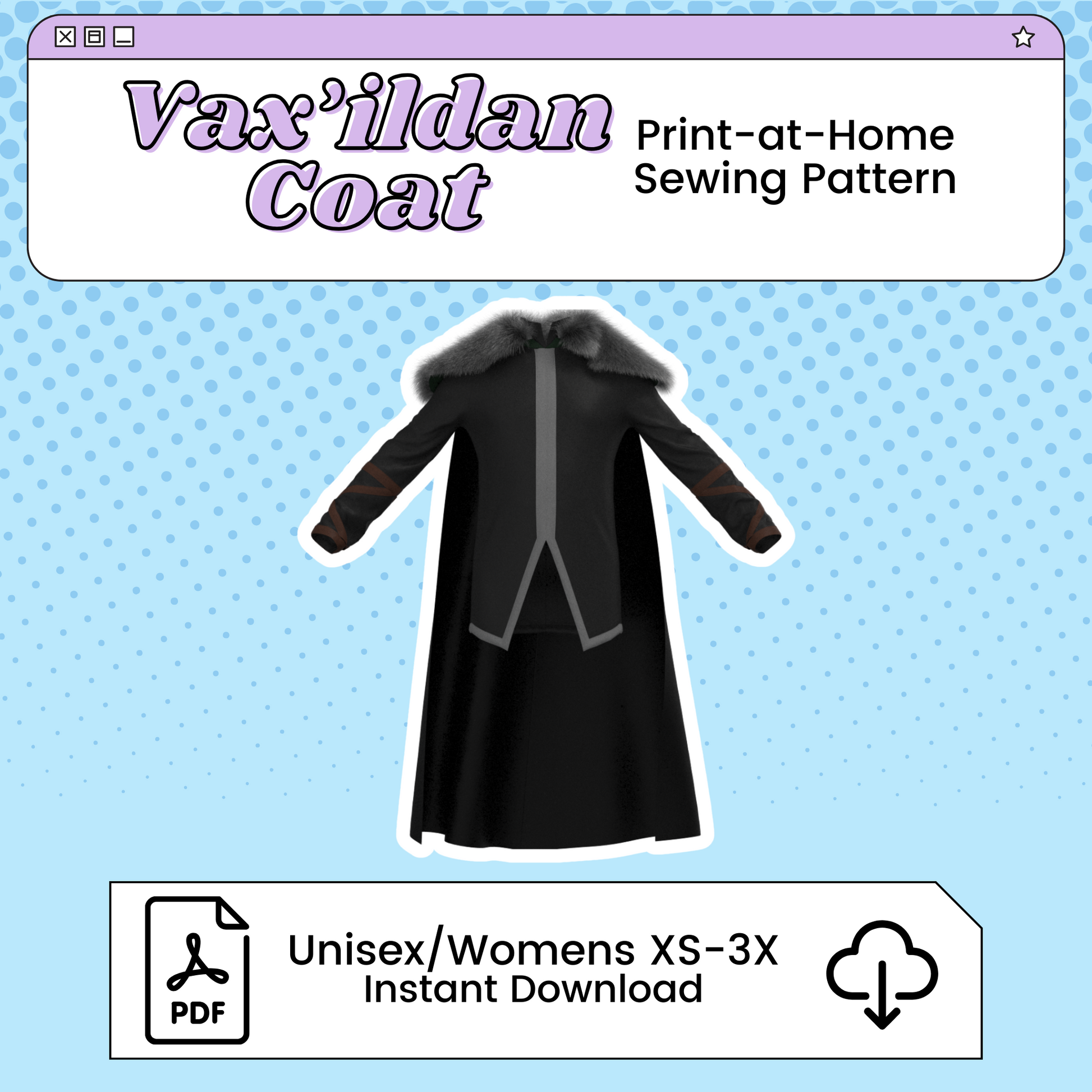Vax'ildan Coat and Cape PDF Cosplay Pattern | Critical Role Inspired Printable Costume Pattern
