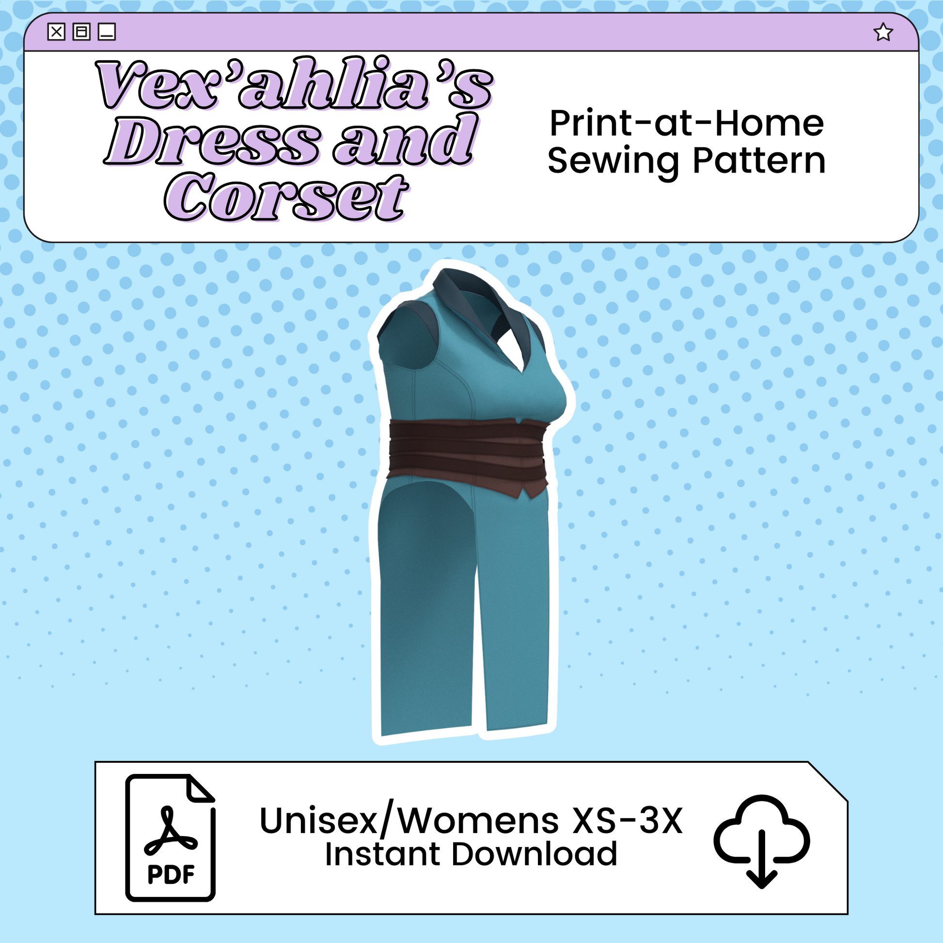 Vex'ahlia's Dress and Corset Cosplay Pattern | Critical Role Legend of Vox Machina Inspired Printable Cosplay