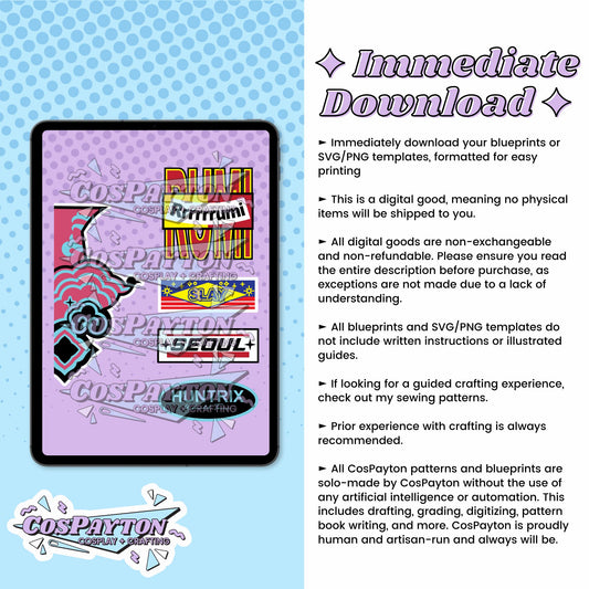 Check out the entire "KPop Demon Hunters" inspired collecton for light stick kits, sewing patterns, 3D models, blueprints, and more coming soon!